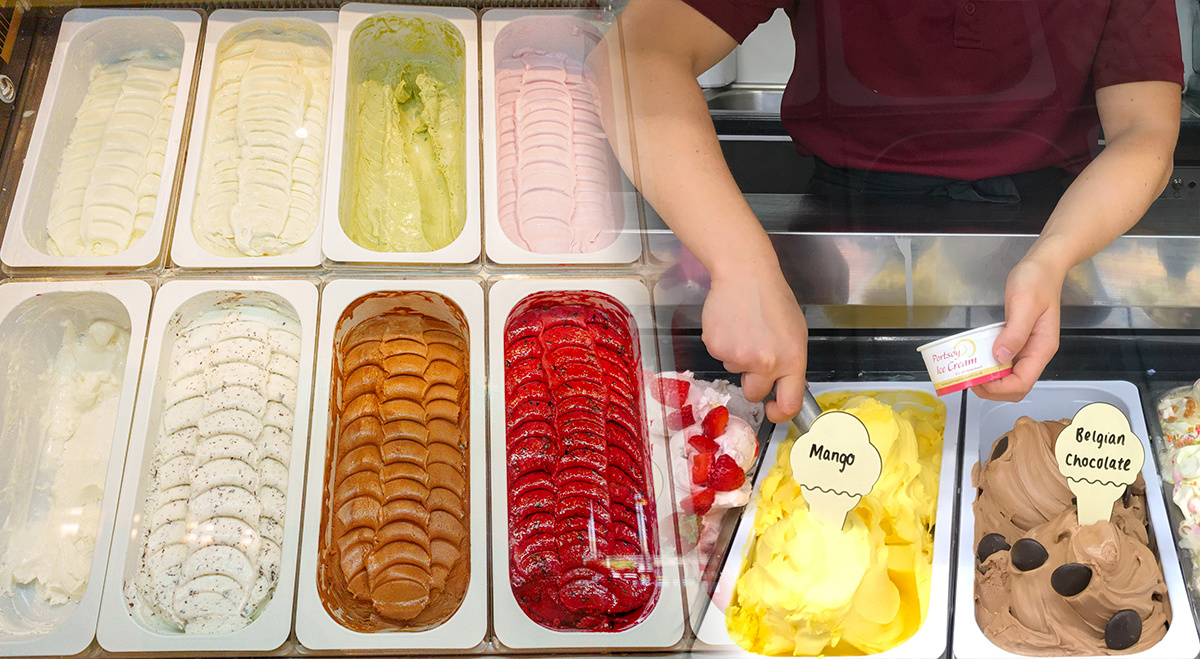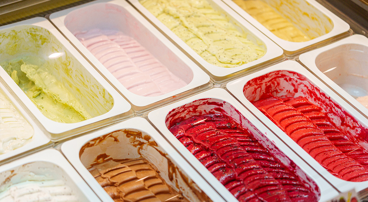 Los recipientes de helado del mismo tamaño pueden utilizarse para envasar diferentes sabores de helado, colocados ordenadamente para lograr un hermoso efecto visual.